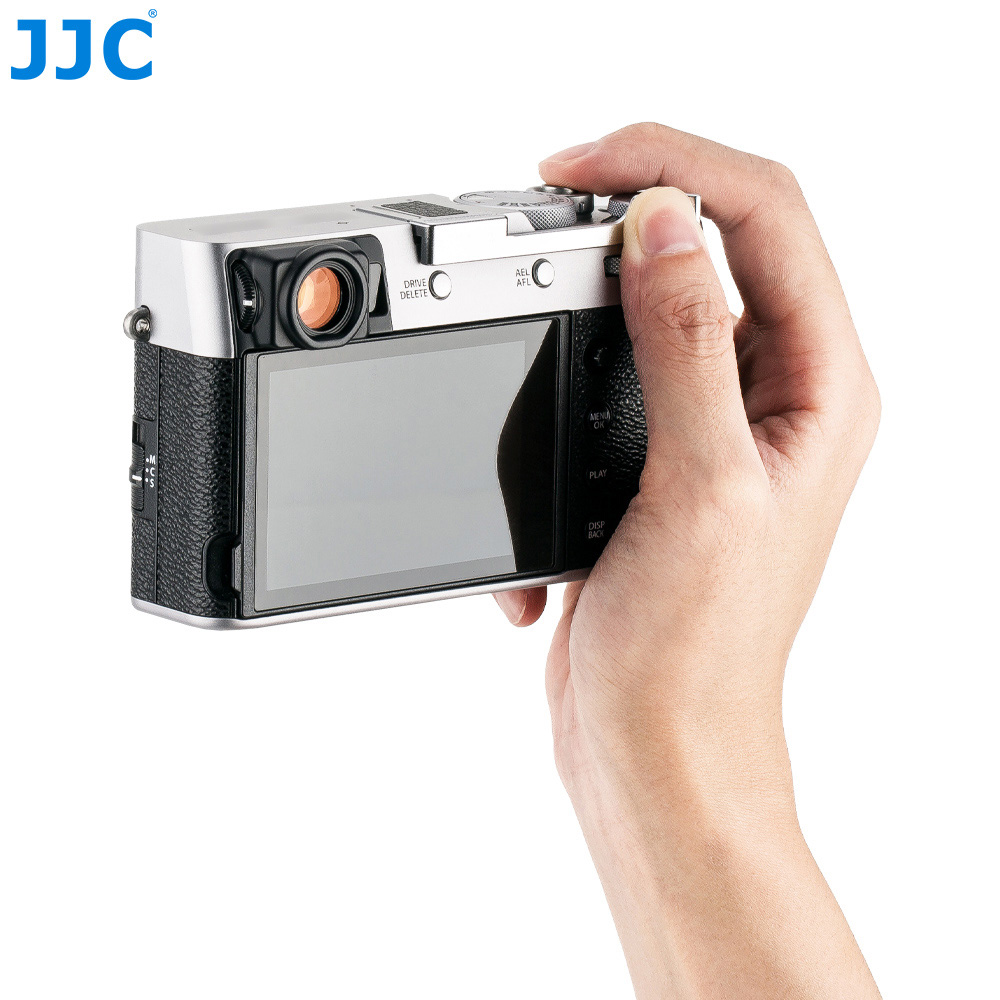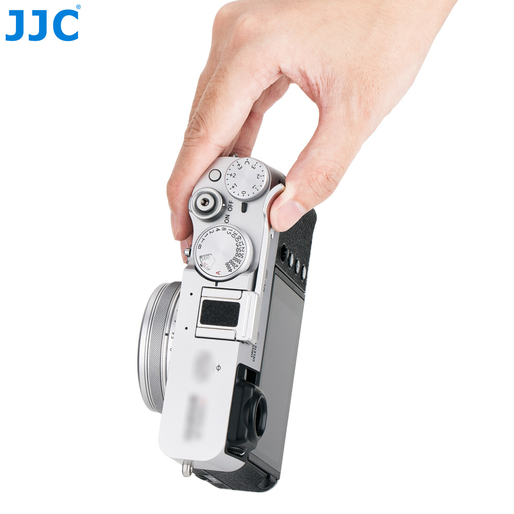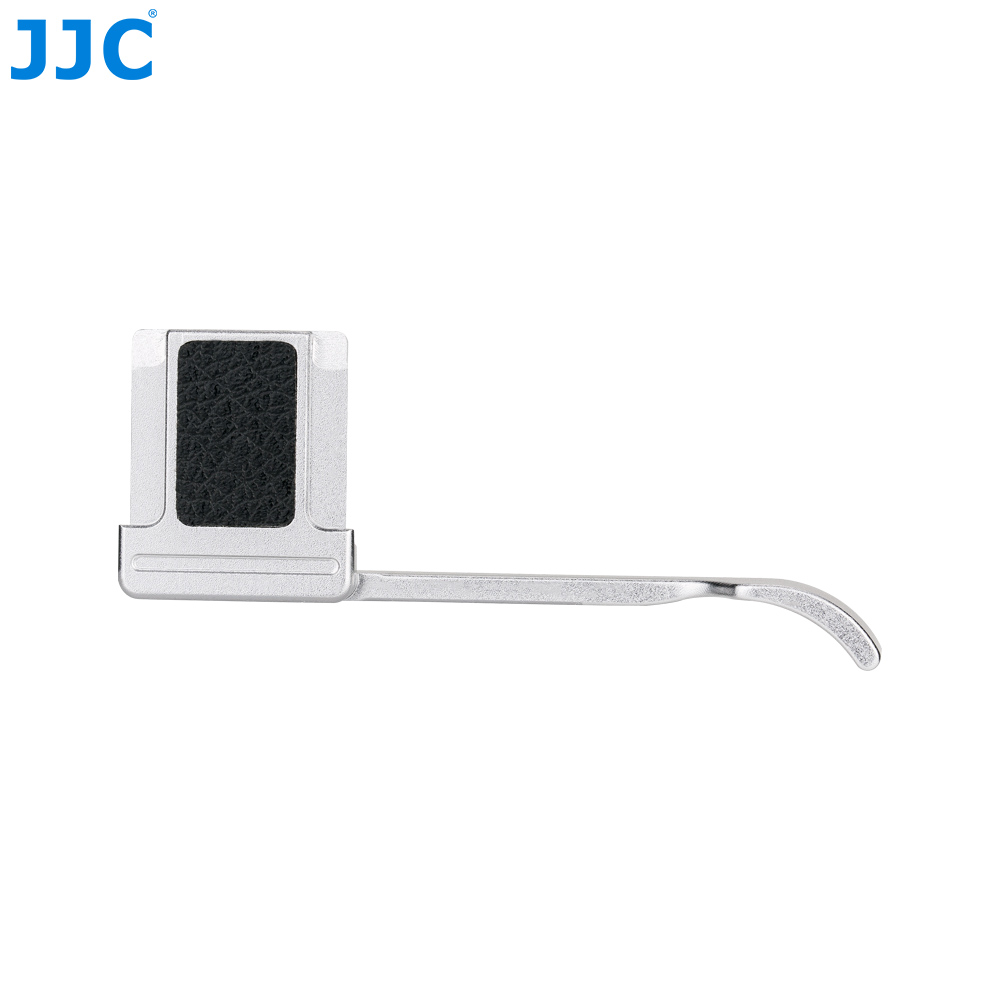 The JJC TA-X100V Thumbs Up Grip is a specially designed accessory for Fujifilm X100VI, X100T, X100V, X100F, X100,X100S,X-E3 and X-E4 cameras. It offers a secure hold and added comfort while holding your camera during shooting. The grip is crafted from anodized aluminum alloy with microfiber leather, and it perfectly matches the camera body. You can easily slide this grip into your camera's hot shoe without any hassle. Moreover, this grip doesn't interfere with your camera's controls, and the end of the grip comes with a silicone pad to prevent any scratches on your camera.