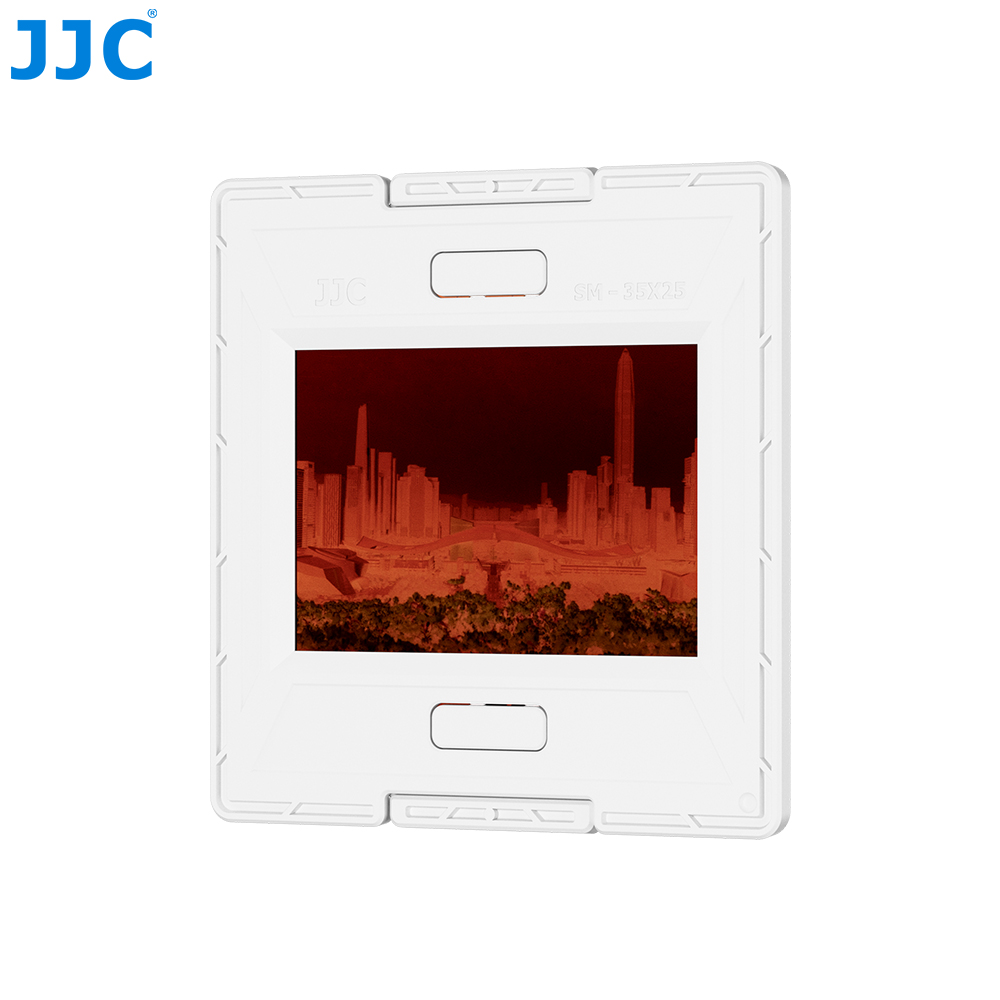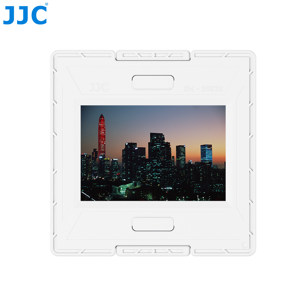 JJC SM-35X Series Slide Mounts is specially designed for 135 film. Made of high-quality ABS material, it is sturdy and durable.The outer frame measures 50×50mm, with a window size of 36×24mm, making it compatible with most projectors, scanners, light boxes, and film storage devices. Featuring a two-piece snap-in design, the holder allows for easy film loading without the need for tools. Multiple precisely placed positioning holes ensure a secure grip on the film, effectively preventing bending and scratches. Additionally, the film holder can be used with the JJC FDA-SMH2 Slide Mount Holder for film digitizing.