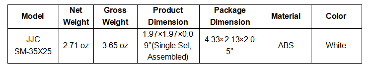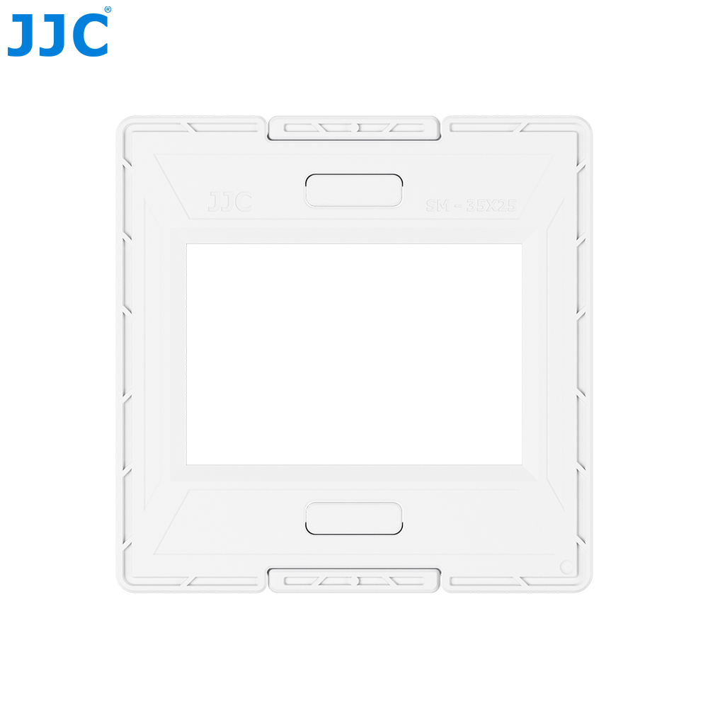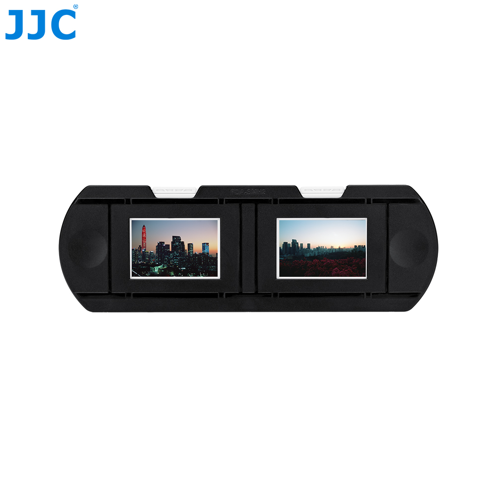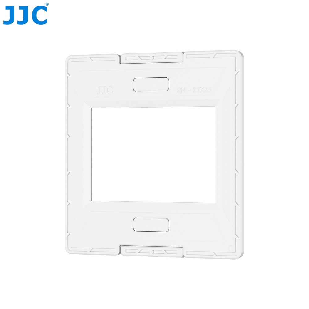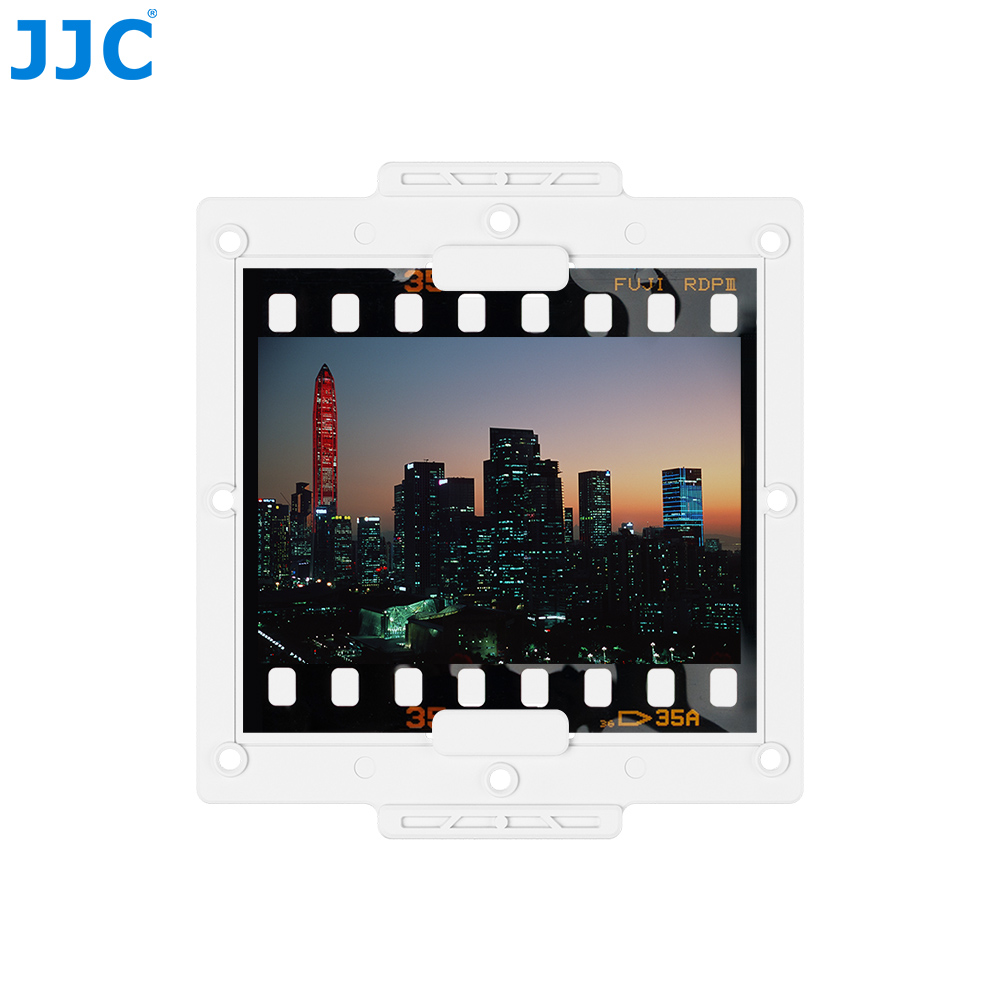 Specifically designed for 135 film strips;Premium ABS material construction for durability;50×50mm outer frame compatible with most scanners and projectors;36×24mm film window precisely matches standard film format;Tool-free two-piece snap design for easy loading/unloading;Multiple precision alignment holes secure film without bending or scratching;Compatible with JJC FDA-SMH2 slide holder for film duplication