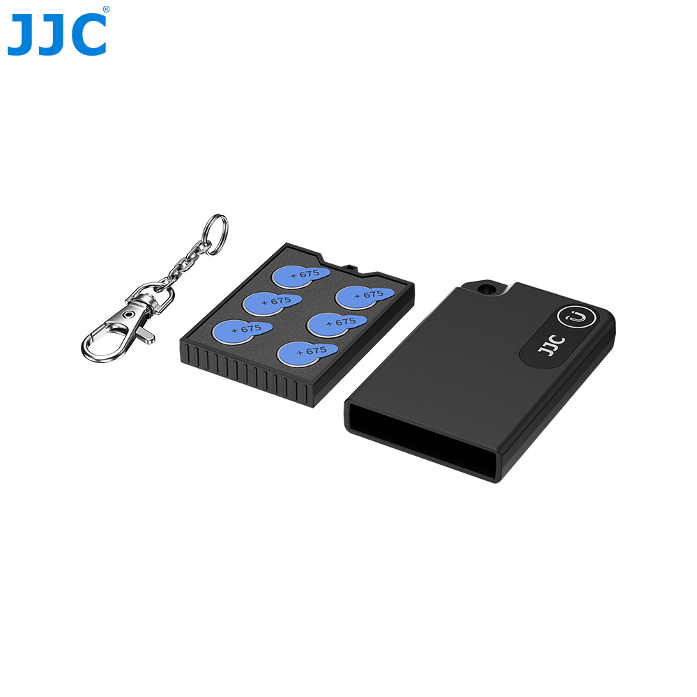 JJC BSC-B6 Battery Storage Box is specially designed for hearing aid users and can store up to six P675 button batteries. The outer shell is made of premium ABS material, which is strong and durable. Featuring splash-proof and shock-resistant performance, it effectively protects your batteries from damage. Inside, the custom-molded EVA foam padding helps absorb shocks and impacts. A built-in magnetic base securely holds the batteries in place, preventing shaking or accidental drops. The independent slot design keeps each battery separated to avoid collision, scratching, or short-circuiting, ensuring safe and organized storage. The drawer-style design allows easy access — simply press the center of the tail end until you hear a “click,” and the drawer will pop out automatically. Push it back and press again to lock it in place. The top corner of the cover is embedded with a small magnet that allows you to easily pick up batteries. Compact and lightweight, the battery storage box can be conveniently carried in a pocket or handbag, or attached to a backpack using a carabiner for easy portability.