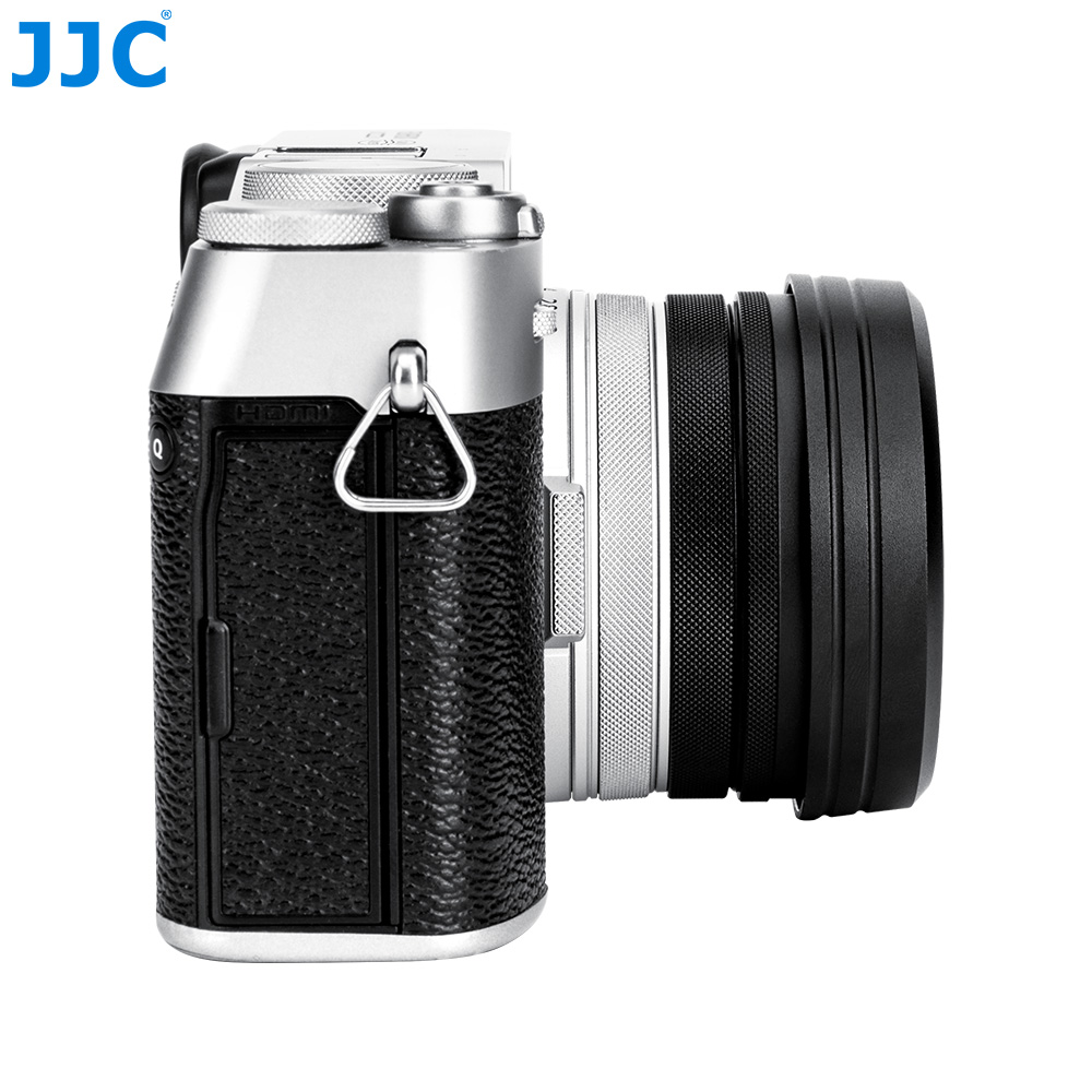 JJC LH-XVI Series Lens Hood is specially designed for FUJI. X100VI, X100V, and X100F cameras to prevent unwanted stray light from entering the lens. The interior features a matte, anti-reflection finish to further reduce or eliminate lens flare. When attached, the hood does not cause vignetting. Its extended front end offers additional protection for the lens against accidental impacts. The front of the hood adopts classic square-style design of FUJI., preserving the original aesthetics of the lens and camera. In addition, the installation of this hood does not affect the use of Φ49mm filters.
