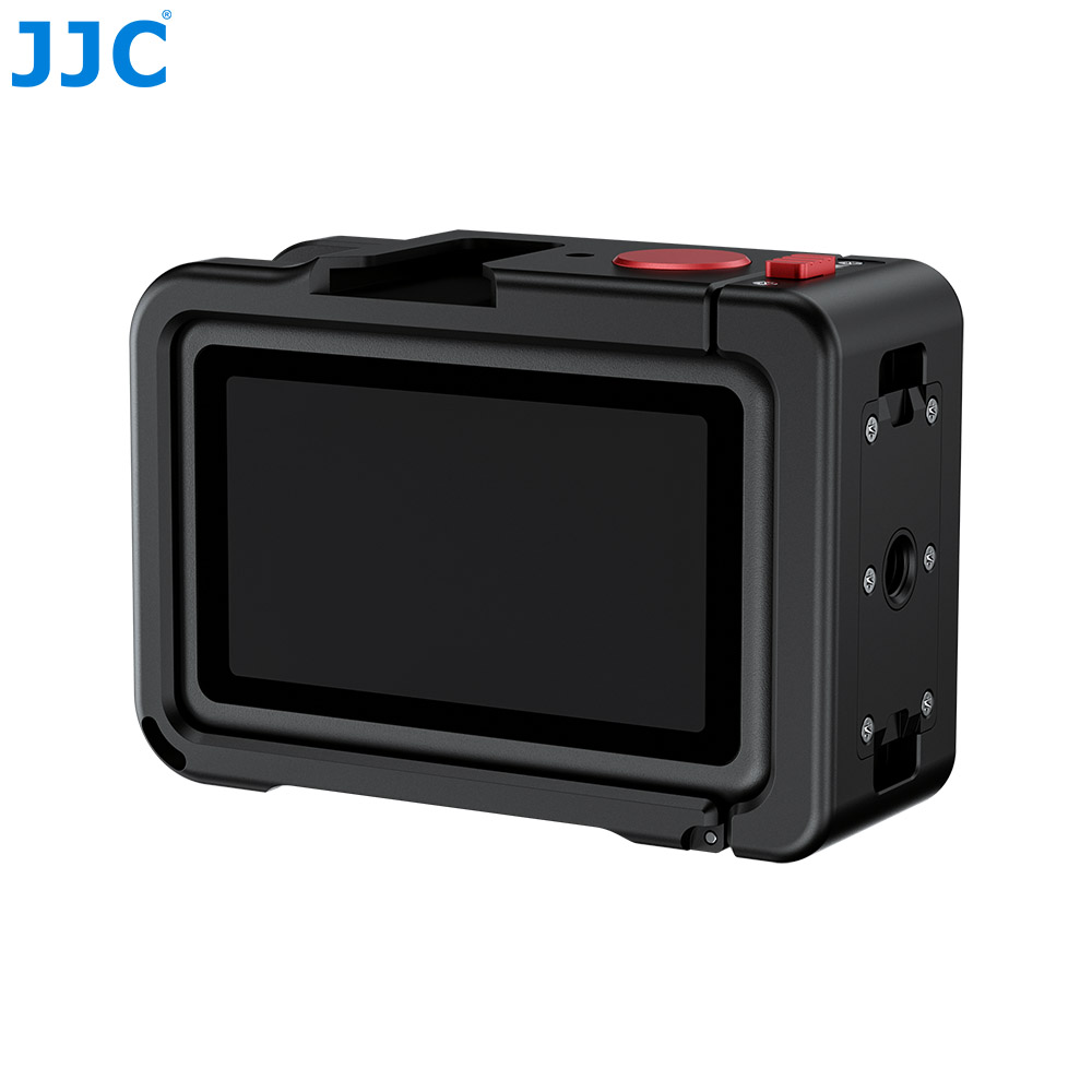 Compatible with DJ. Osmo Action 6;Made of aluminum alloy, lightweight and durable;Precisely fits the camera, with silicone pads for a non-slip, secure grip and scratch protection;Top cold shoe mount for connecting LED lights or microphones;Side 1/4"-20 screw hole and magnetic quick-release female mount for easy accessory expansion;Lanyard hole for attaching a safety strap or wrist strap;Does not affect the use of buttons, touchscreen, ports, battery cover, or MicroSD card slot after installation;Includes lens cap, lens cap strap, and wrist strap for convenient carrying