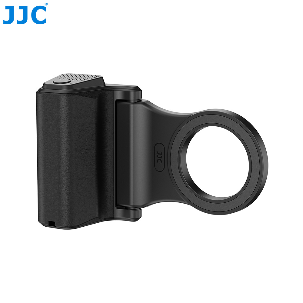 JJC MSG-IP BLACK Magnetic Phone Grip is compatible with a wide range of phones. It works directly with the iPhone 17/16/15/14/13/12 series(with or without magnetic cases), and with the included metal ring, it can also be used on iPhone 11 series or earlier model, as well as any Android smartphone. This magnetic shooting grip provides a camera-like handheld shooting experience, ideal for vlogging, live streaming, selfies, and group photos. Featuring a DSLR-style grip wrapped in non-slip silicone, it offers a comfortable and secure hold, effectively reducing shake during photo shooting or video recording. The grip can also be unfolded as a phone stand, supporting both portrait and landscape orientations without interfering with the side buttons of the phone.