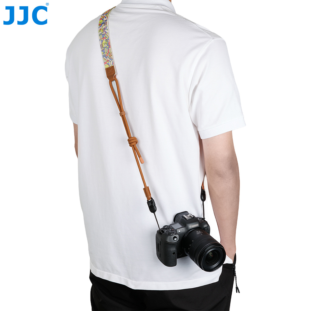 JJC FS- Series Shoulder Strap is compatible with most mirrorless and DSLR cameras, offering strong versatility. Designed for those who pursue fashion and individuality, this strap delivers exceptional visual appeal, with each color incorporating unique elements to showcase a distinctive style. It is crafted from a flexible, breathable four-layer composite material. The inner layer features delicate, skin-friendly microfiber, the middle layer is made of lightweight elastic cushioning material covered with durable, soft PU leather, and the outer layer is high-strength polyester fabric. These four layers are tightly bonded to provide both softness and long-lasting support.
