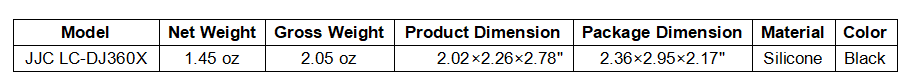 Specially designed for DJ. Osmo 360(with JJC TLP-DJ360 or DJ. Transparent Lens Protectors);Prevents bumps and scratches during daily carrying or outdoor use;Made of silicone material with dustproof and stain-resistant features;Easy to install and remove;Does not affect the camera’s appearance or operation