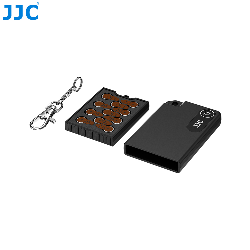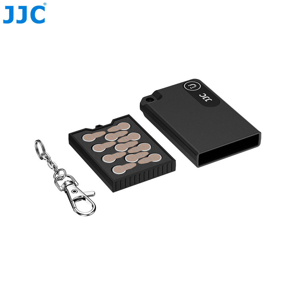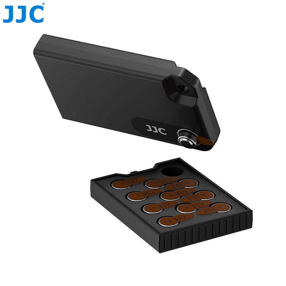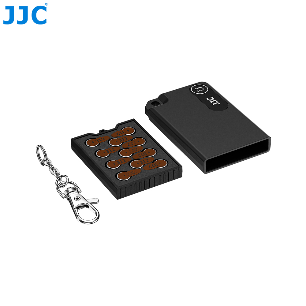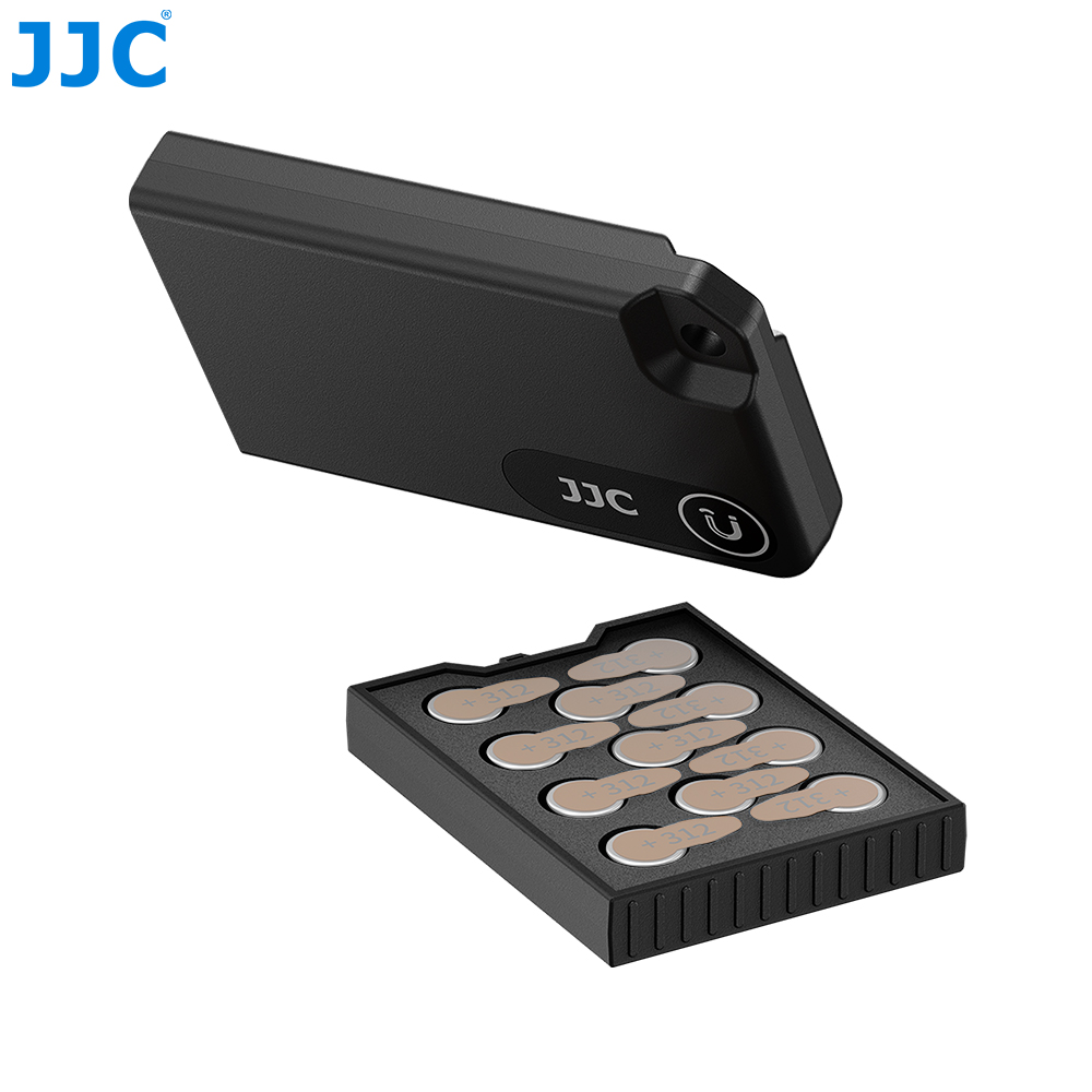 JJC BSC-B11 Battery Storage Box is specially designed for hearing aid users and can store up to eleven P312 / P10 / P13 button batteries. The outer shell is made of premium ABS material, which is strong and durable. Featuring splash-proof and shock-resistant performance, it effectively protects your batteries from damage. Inside, the custom shaped EVA foam pad helps absorb vibration and impact. A built-in magnetic base securely holds the batteries in place, preventing shaking or accidental drops. The independent slot design keeps each battery separated to avoid collision, scratching, or short-circuiting, ensuring safe and organized storage. The drawer-style design allows easy access — simply press the center of the tail end until you hear a “click,” and the drawer will pop out automatically. Push it back and press again to lock it in place. The top corner of the cover is embedded with a small magnet that allows you to easily pick up batteries. Compact and lightweight, the battery storage box can be conveniently carried in a pocket or handbag, or attached to a backpack using the included keychain for easy portability.