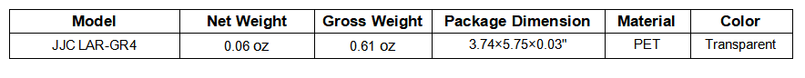 The JJC LAR series screen protector tailored to each camera's LCD screen is only 0.15mm thick. It protects the camera screen with no effect on screen folding and unfolding. Distinguishing it from traditional tempered glass protectors, the protector features a low-reflective Nano coating to reduce screen glare effectively; its high light transmittance of up to 95% ensures a clear and vivid screen reproduction; a scratch-resistant coating to prevent damage from scratching. It has an anti-fingerprint coating that minimizes fingerprint and smudge buildup and is water-resistant and oil-resistant.