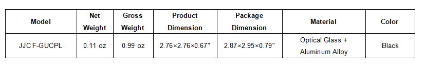 JJC F-GUCPL | CPL Filter ×1 Filter Case ×1 Microfiber Cleaning Cloth ×1 |