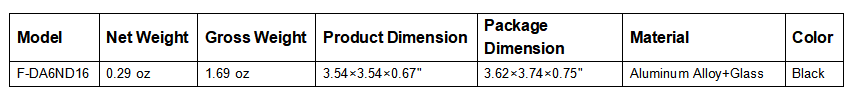 Model In the box Product image JJC F-DA6ND16 ND16 Filter ×1 Filter Case ×1 Microfiber Cleaning Cloth ×1