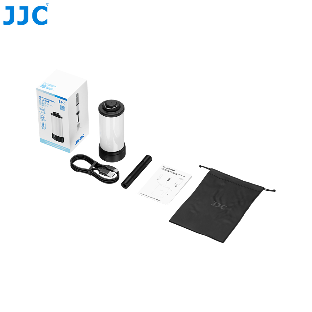 Specially designed for panoramic cameras with a 1/4"-20 threaded hole;Ideal for achieving even illumination from multiple angles;Cylindrical design ensures 360° uniform brightness and smooth color transitions;Allows easy mounting to tripods, light stands, or other camera accessories;Versatile design can be used as a fill light, hanging light, or camping lamp;Up to 6 hours of runtime on a full charge and supports pass-through charging;Adaptive charging current design prevents overcurrent, short circuits, and overheating for safe use;Simple operation with a single multifunction button;Includes charging cable, storage pouch, and extension rod for convenient outdoor use