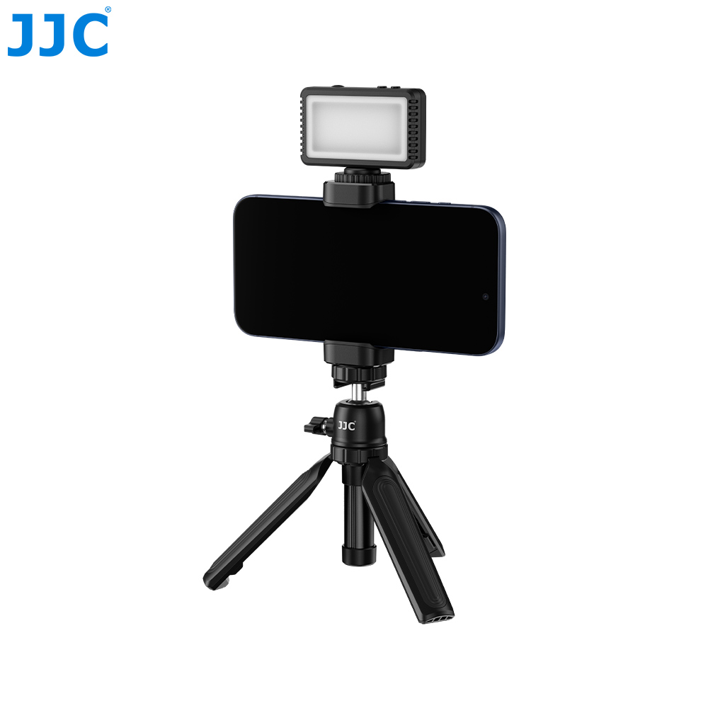 Cold shoe mount on top fits most standard shoe-mounted LED lights, flashes, and microphones