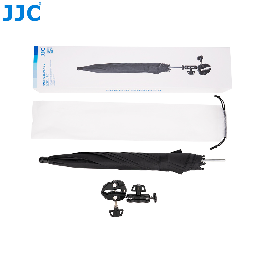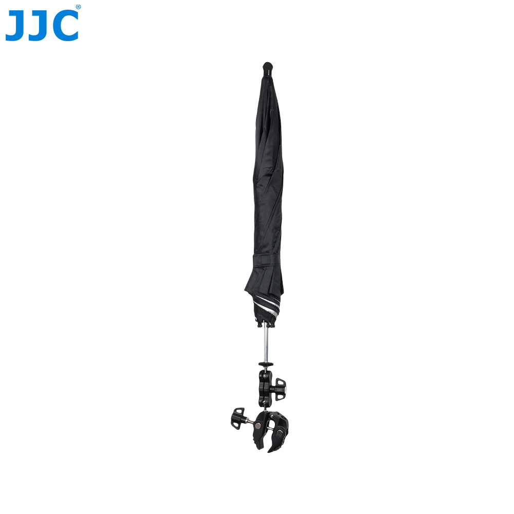 JJC CU-XLM3 Camera Umbrella Mount Kit is specially designed for outdoor photography, protecting your camera and lens from rain, snow, harsh sunlight, or bird droppings without the need to hold the umbrella, freeing up your hands. This kit mainly consists of a camera umbrella and a Y-shaped clamp (a combination of the Multi-Function Power Clip and the Pea Clamp).