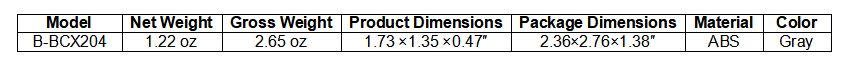 B-BCX204 | Nominal Voltage: 3.87V Charging Limit Voltage: 4.45V Typical Capacity: 1950mAh Rated Capacity: 1900mAh Rated Energy: 7.36Wh | DJ. BCX204 | DJ. Osmo 360, Osmo Action 6/5 Pro/4/3 |