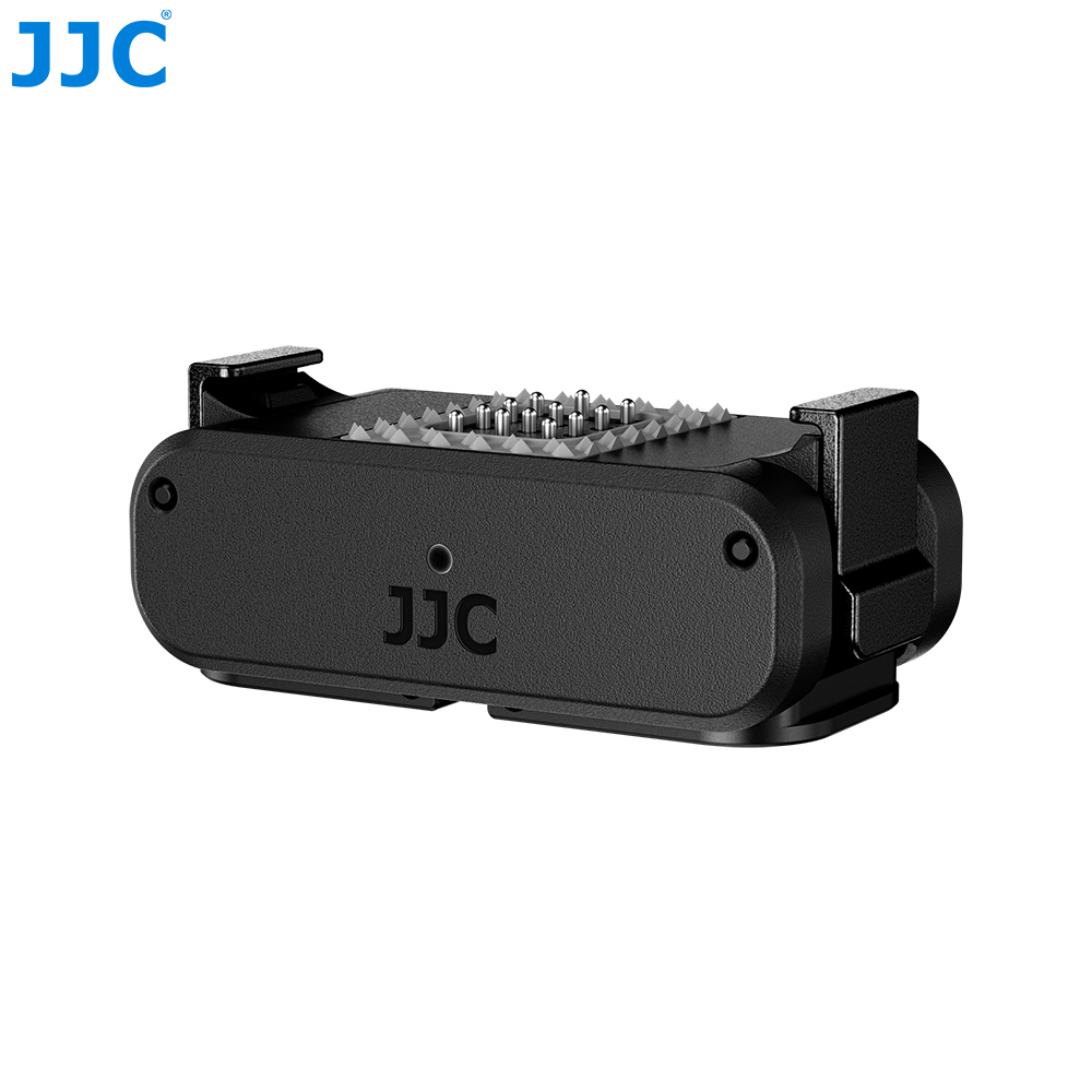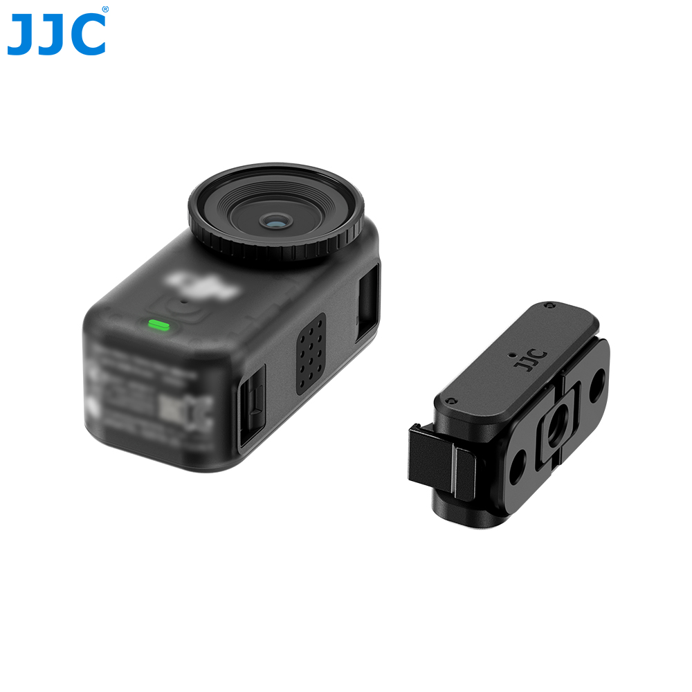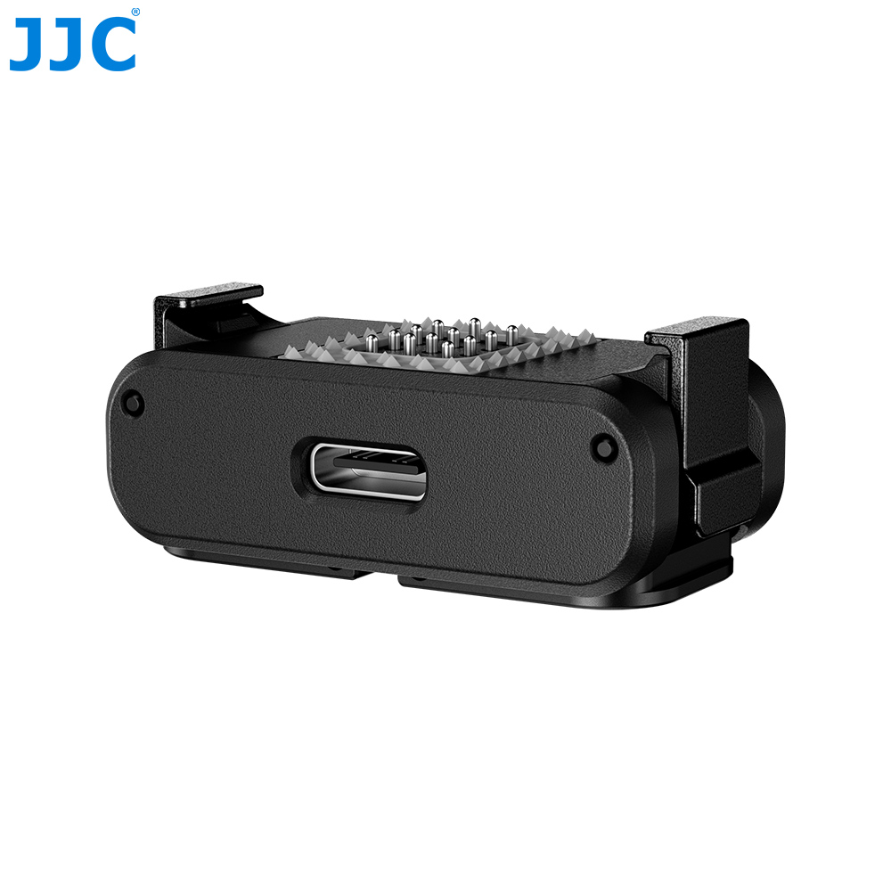 JJC QRE-NANO Rechargeable Quick-Release Adapter is specially designed for DJ. Osmo Nano, enabling fast and effortless installation and switching of accessories with a secure and reliable connection. The main body is made of high-strength nylon, offering an excellent balance of lightweight design and structural durability. Two quick-release buckles on both sides are made of high-quality zinc alloy, offering high strength and excellent wear resistance. The bottom two-prong mount is made of aluminum alloy, suitable for frequent installation and long-term use. Featuring a bidirectional magnetic quick-release design, it allows one-second installation and removal, delivering smooth and highly efficient operation. Equipped with a USB-C charging port and spring-loaded power contacts, the adapter supports external power supply to the camera, maintaining stable and reliable charging performance even during frequent detachment and reattachment. The magnetic contact surface is lined with a soft silicone cushioning pad, which fits snugly against the camera body to effectively prevent scratches while further enhancing connection stability. The bottom is equipped with a foldable dual-prong mount and a standard 1/4"-20 threaded hole, making it compatible with three-prong accessories and allowing easy connection to tripods, selfie sticks, extension poles, and other common photography accessories for versatile mounting options.