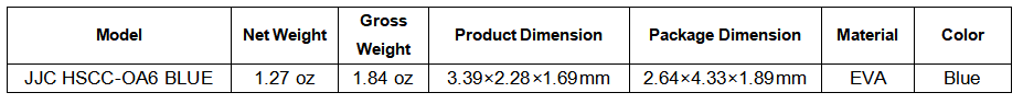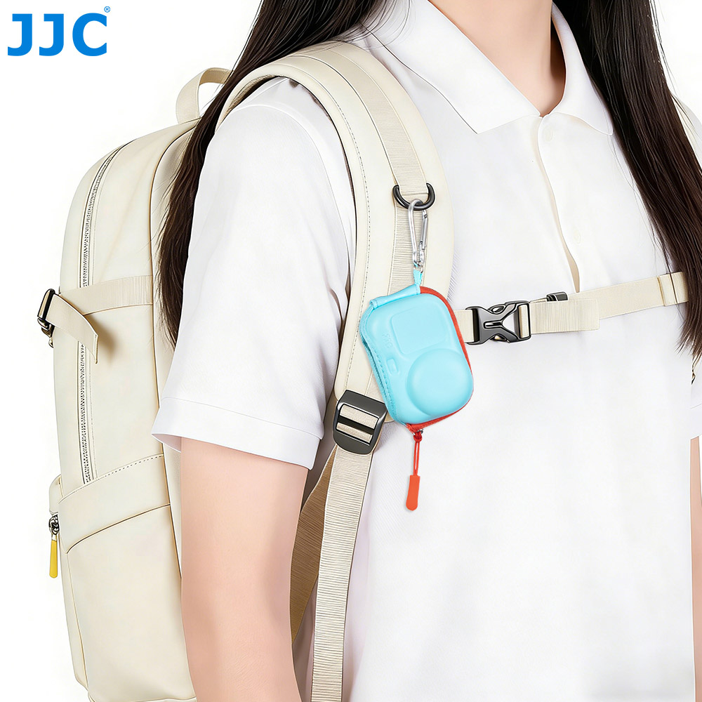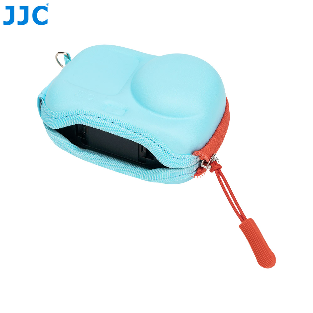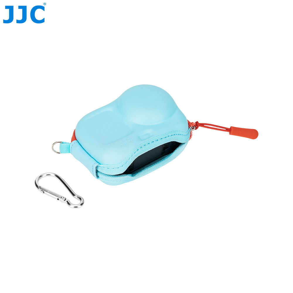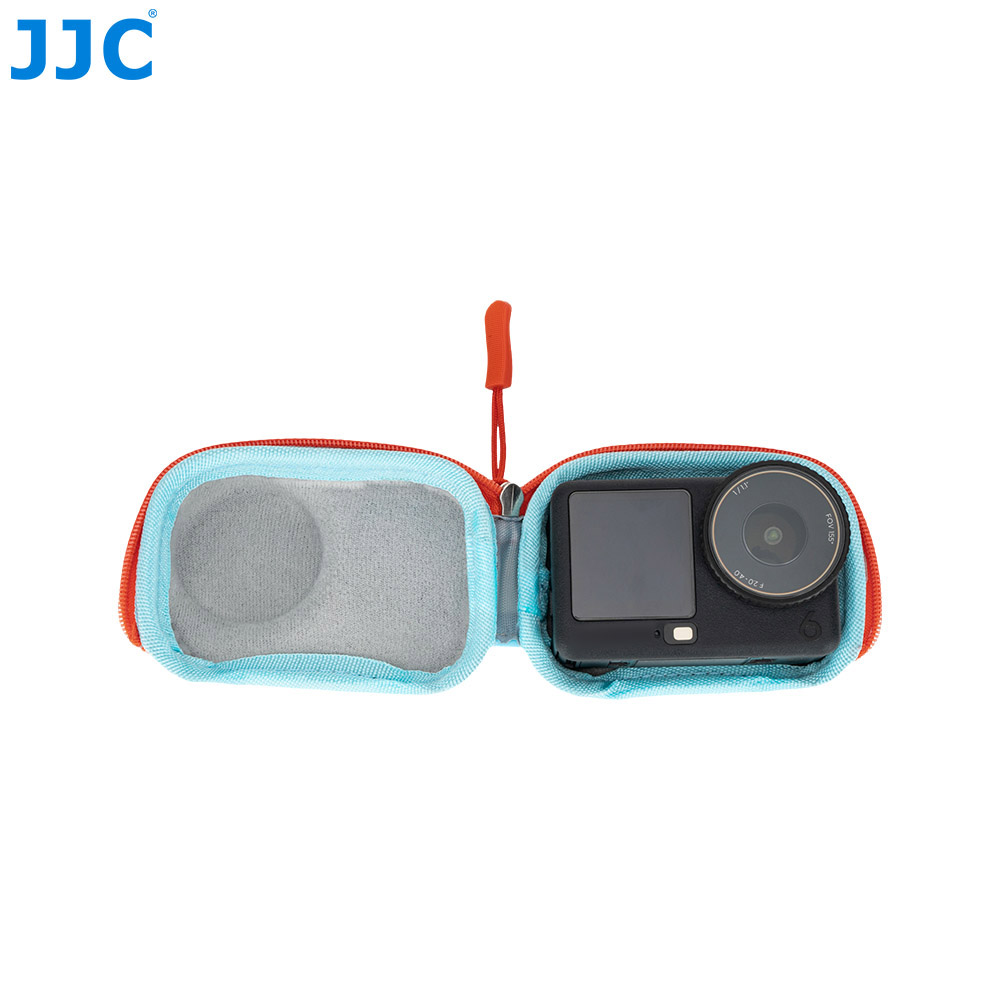Compatible with DJ. Osmo Action 6 / 5 Pro / 4 / 3;Bottom opening design for mounting dual-direction quick-release accessories;Made of premium EVA with a reinforced rib structure for enhanced durability;Provides shock resistance, dust protection, and splash resistance;Soft velvet interior protects the device from scratches;Reserved space for the camera lens for added lens protection;Includes a carabiner for easy attachment to a backpack or belt;Compatible with JJC lens caps;Available in Black, Blue, Purple, and Gray