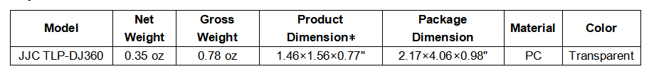Specially designed for DJ. Osmo 360;Precise fit to the lens for reliable protection;High-transmittance PC lens with multi-layer coating;95–98% light transmission, effectively reducing image loss;Anti-reflective coating suppresses glare, ghosting, and reflections;Water- and fog-resistant coatings protect against rain and dust;Smooth surface, easy to clean water, dust, or fog;Snap-on design for secure installation without tools;Compatible with JJC LC-DJ360X and JJC SCC-DJ360 BLACK
