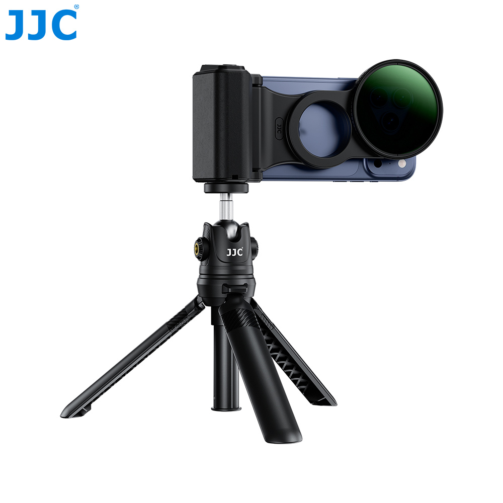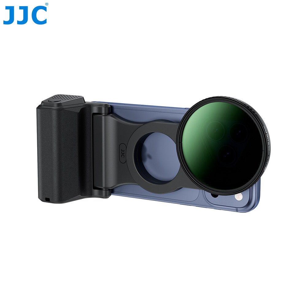 JJC MSG-P2 ND BLACK Magnetic Grip & Filter Kit is compatible with iPhon. 17 / Air / 17 Pro / 16 Pro / 15 Pro / 14 Pro. The complete kit centers on a magnetic grip, a magnetic filter adapter ring, and a CPL filter, giving smartphone photography a camera-like, stable holding experience while enabling the use of camera filters to achieve professional-level shooting results.
