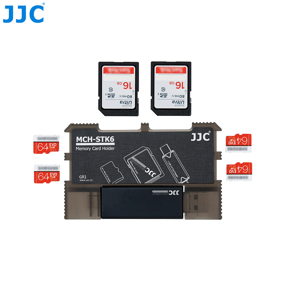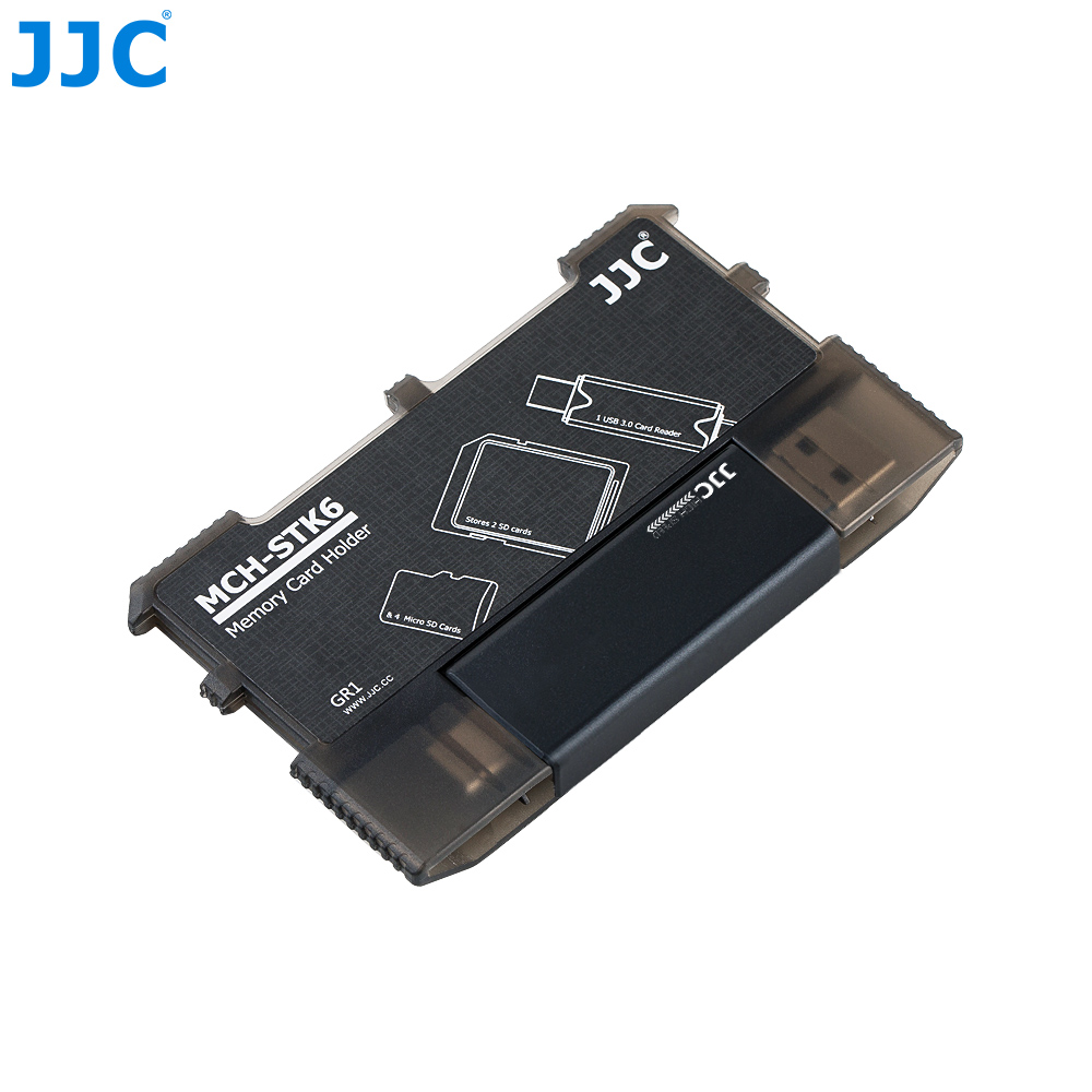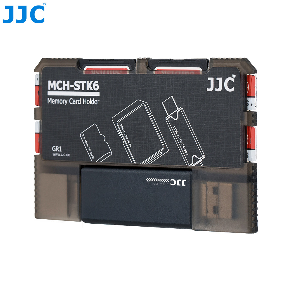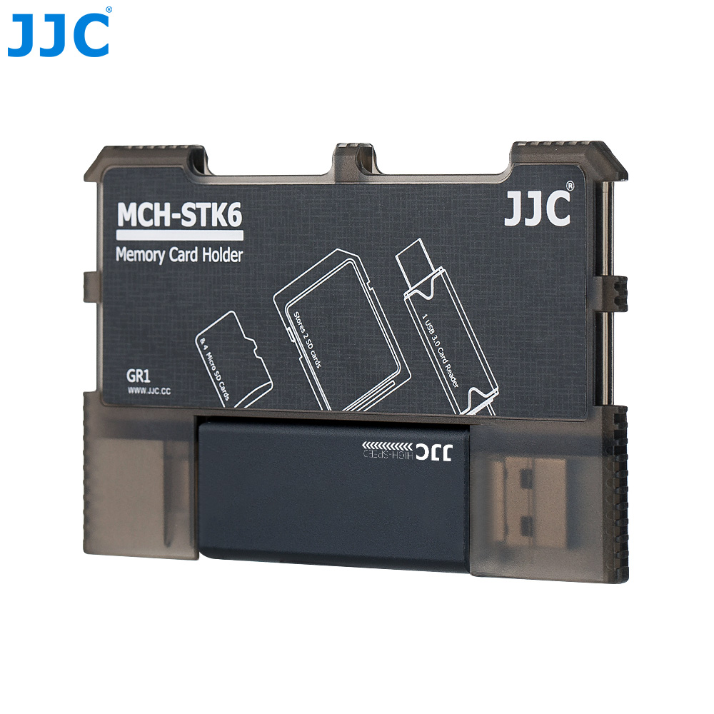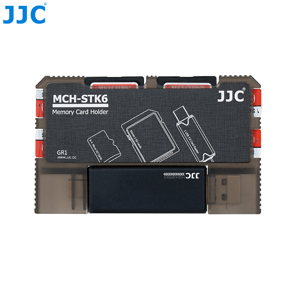 The JJC MCH-STK6GR Memory Card Holder is made of high quality ABS material, sturdy and durable. It can hold 2 SD cards, 4 MSD cards and 1 USB 3.0 card reader. The holder can effectively protect cards from dust and loss and your scattered cards can be held neatly. The snap joints inside the card slots secure your cards and protect them from falling. The holder is easy to use and can be marked for the memory card patterns on the back. You can insert the card into the slot correctly and quickly according to those patterns when using. The patterns also can be marked with information about the corresponding cards for bettering organizing your cards. Besides that, the holder comes with a USB 3.0 high speed card reader with 3 ports: USB 3.0, Micro USB 2.0 and Type-C USB 3.0. Plug and play design, no drivers required. It can access to SD and MSD cards simultaneously. This credit card size holder is lightweight and portable. You can put it easily into your pocket, handbag or backpack. The JJC MCH-STK6GR memory card holder with integrated design of memory card slots and card reader slot will become a good partner for your card organizing and data transferring.