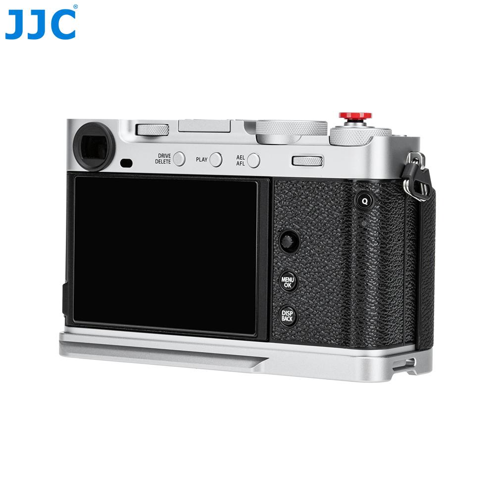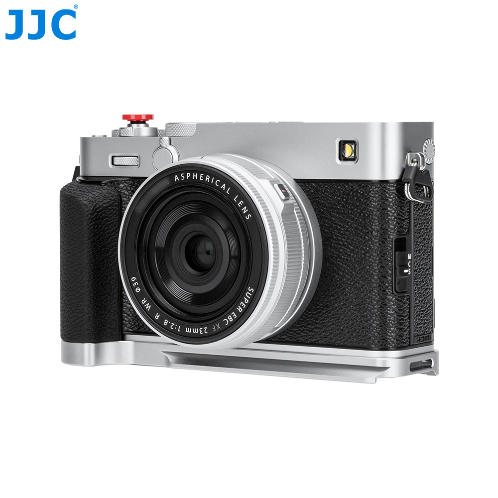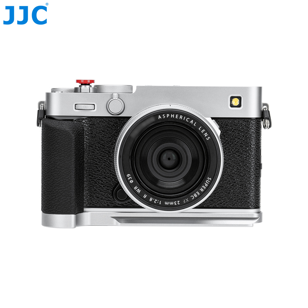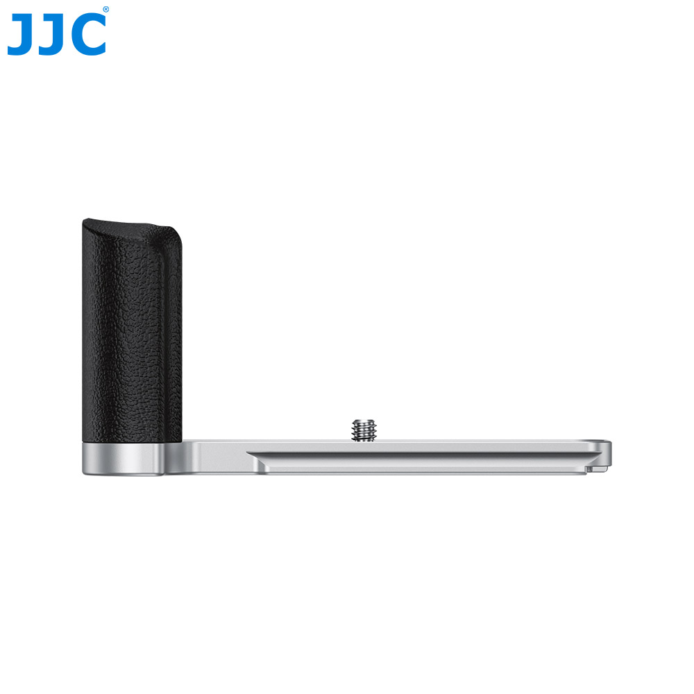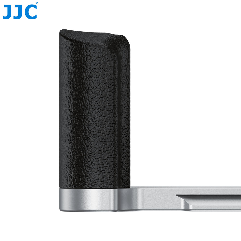 JJC HG-XE5 Camera Hand Grip is specially designed for the FUJI. X-E5, enhancing the overall handling experience. The grip body is crafted from durable aluminum alloy, ensuring strength and reliability. The grip section is covered with soft, non-slip silicone for a comfortable feel and secure hold. A silicone pad is placed at the contact area with the camera to prevent scratches during daily use. The bottom of the silicone pad features a built-in SD card slot for securely storing one SD card. The grip fits the camera precisely without blocking any ports, and batteries or memory cards can be replaced easily without removing the grip. A 1/4"-20 threaded hole on the bottom allows mounting on a tripod, freeing your hands and improving shooting stability by reducing camera shake. The built-in Arca-Swiss quick release plate is compatible with Arca-type tripod heads, enabling quick attachment and removal. Openings are reserved for the speaker and Bluetooth button, ensuring full functionality without obstruction. Available in both black and silver, this series of camera hand grips complements various camera styles. In addition, the grip is compatible with the Peak Design Capture Camera Clip V3. Includes a shutter button for easier operation.