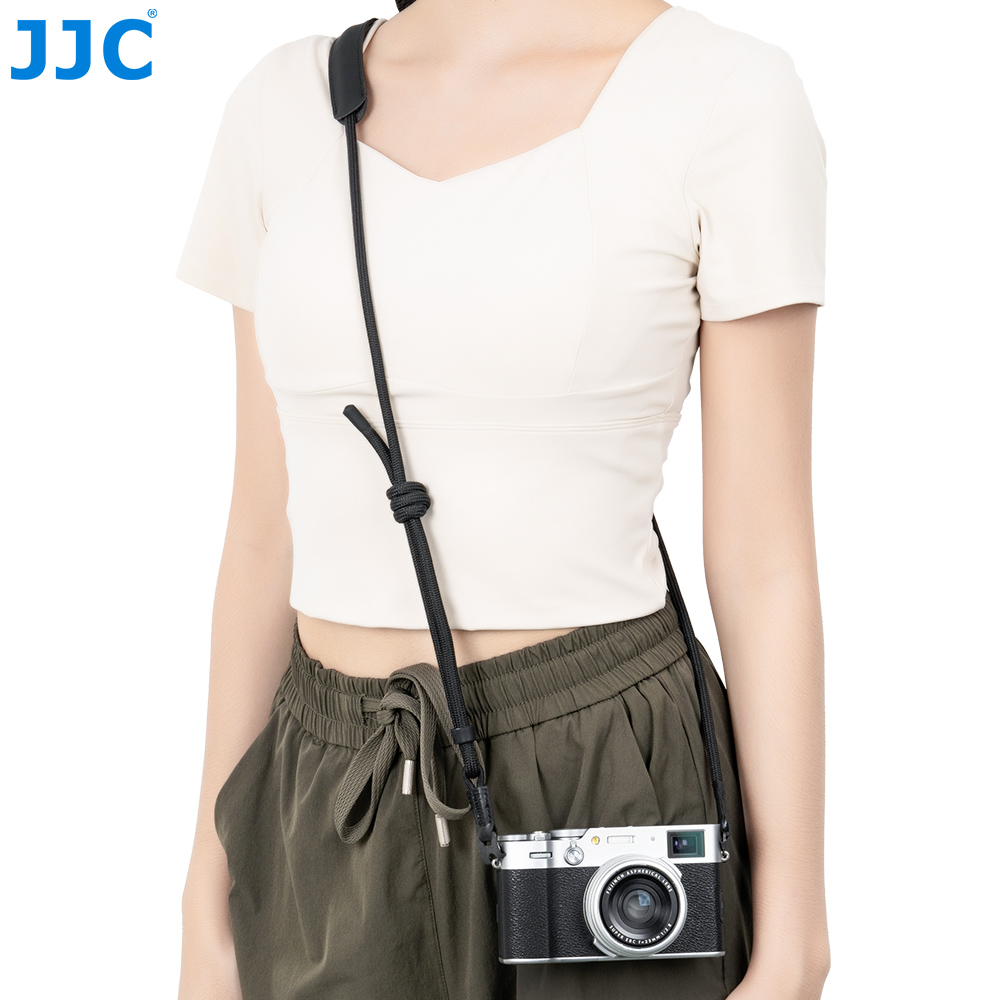 JJC CPC Series Neck Strap is specially designed for retro-style compact cameras such as LEI. & FUJI. that feature small round strap lugs. It is made of tightly woven 48-braid high-density rope that is strong, wear-resistant, and secure to use. The shoulder pad is crafted from soft and comfortable microfiber leather, ensuring fatigue-free wear even over long periods. Both ends of the strap are finished with silicone-dipped seals to prevent fraying. Leather pads on each end protect the camera body from scratches caused by metal rings. The adjustable knot design allows flexible length adjustment to suit different body types and carrying preferences.