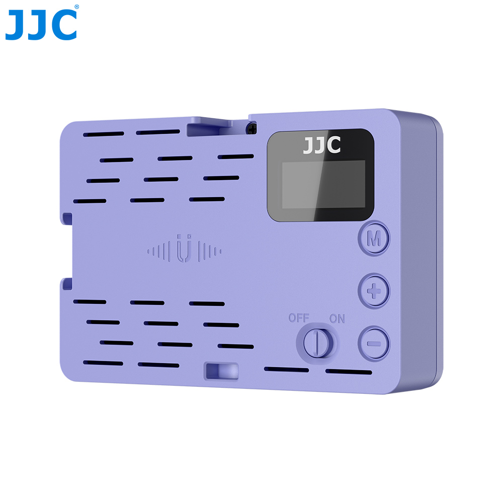Suitable for Vlog shooting and live streaming lighting;The bottom is equipped with a 1/4"-20 screw hole;The back is designed with built- in magnets, which can directly adsorb and fix on flat surfaces made of ferromagnetic materials;Comes with a magnetic ring with adhesive on the back, suitable for pasting on smooth glass and ceramic tile surfaces, and then the light is attached;The top and right side are designed with cold shoe, which can install multiple LED lights of the same mod el together;The LED display clearly shows the lighting mode and battery status;Designed with overheat protection;Built-in 2600mAh battery;Charged with a USB-C cable;Available in black and purple